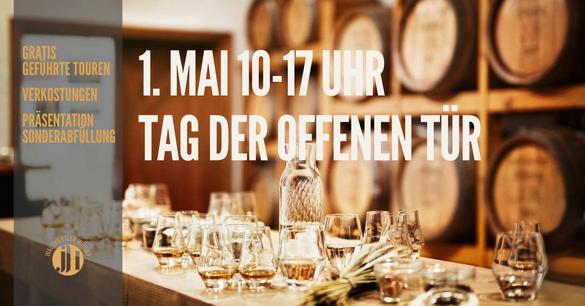 Wir öffnen in der Whiskyerlebniswelt, in Roggenreith, unsere Türen und laden euch, anlässlich des TAG DES ÖSTERREICHISCHEN WHISKYS, am 1. Mai zu unserem Tag der offenen Tür ein. Wir freuen uns, euch von 10-17 Uhr bei uns begrüßen zu dürfen. Es erwarten euch GRATIS geführte Touren, Verkostungen und die Vorstellung unserer neuen Sonderabfüllung.